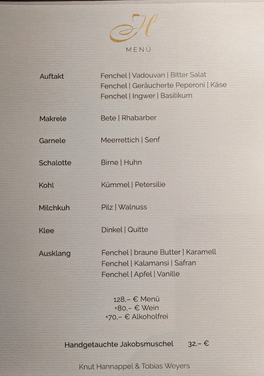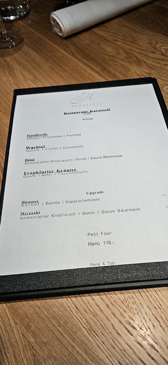 Welcome to Restaurant Hannappel, a culinary gem nestled in Essen, Germany. This fine dining establishment offers an exquisite menu that promises a memorable gastronomic experience. Guests rave about the delightful 6-course menus and themed pairings, such as a cherry-centric feast, showcasing the restaurant's creativity and attention to detail. The well-prepared dishes are crafted with fresh, seasonal ingredients, striking a perfect balance between flavors and portions that leave diners content without feeling overwhelmed.